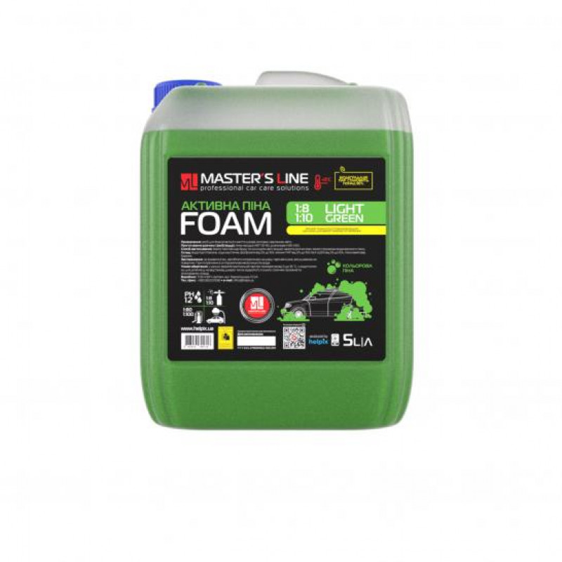 Кольорова активна піна Master’s Line «Light Green» призначена для безконтактної мийки легкового та вантажного транспорту. Швидко та ефективно видаляє забруднення різного характеру (дорожній бруд, пісок, чорнозем, пташиний послід, сліди тваринного та рослинного походження).