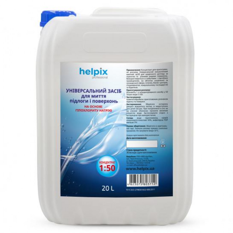 Концентрований засіб для гігієнічної обробки поверхонь Helpix Professional. Універсальний миючий засіб для щоденного догляду за підлогою та різними видами поверхонь в приміщеннях загального та індивідуального призначення.