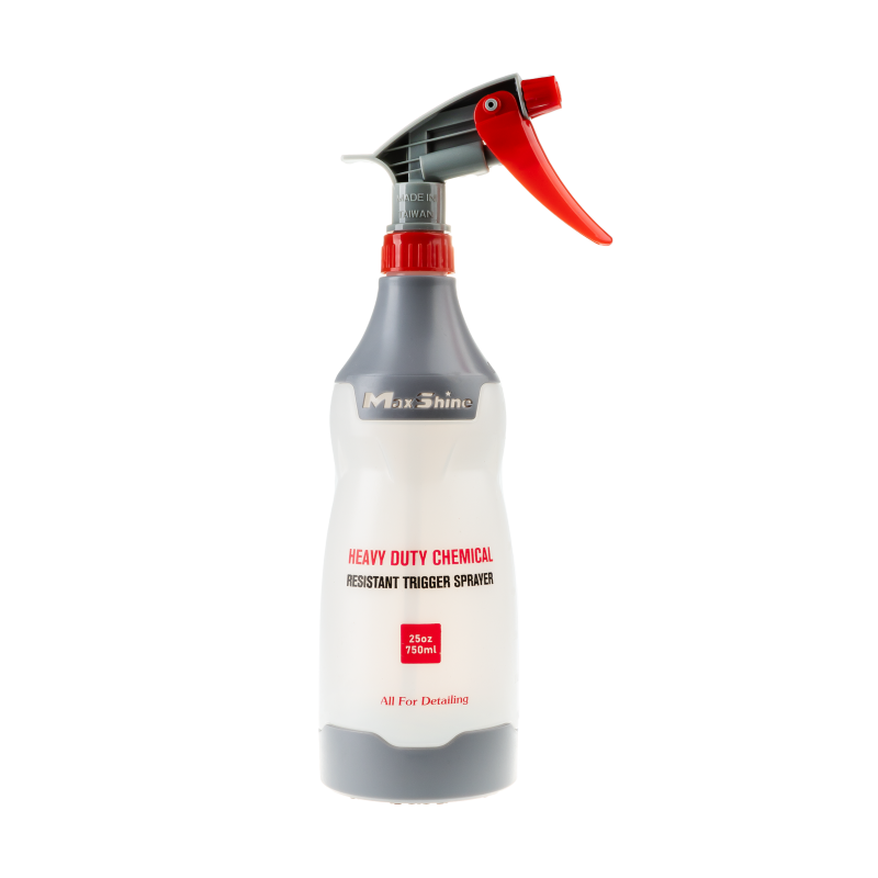 Heavy Duty Chemical Resistant Trigger Sprayer – ручний розпилювач з резервуаром на 750 мл з хімостійкого ПЕТ-пластику. Призначений для роботи як з лужними, так і кислотними агентами. Також у нього можна заливати засоби для хімчистки, видалення бітуму та очищувачі колісних дисків. Термін експлуатації розпилювача продовжують хімостійкі гумові прокладки механізму подачі рідини. Нижня частина пляшки оснащена прогумованими вставками з антиковзним ефектом.