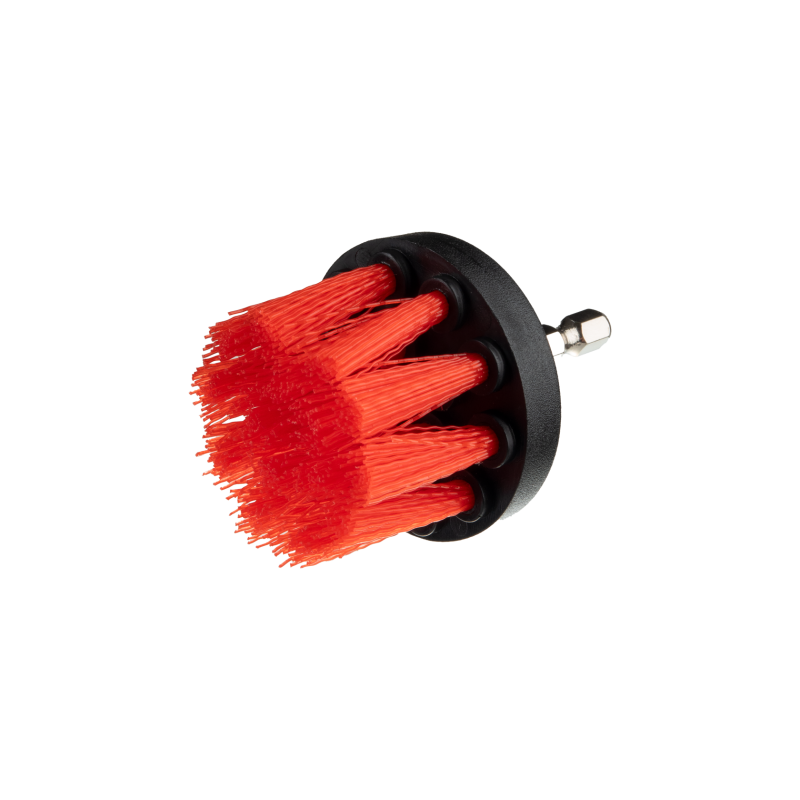 Щітка MaxShine The Heavy-Duty Drill Carpet Brush з довгим ворсом довжиною 30 мм призначена для чищення ковроліну, автомобільних килимків, тканинних сидінь, стелі та дверних карток. Її нейлонові щетинки товщиною 3 мм у міру жорсткі для видалення забруднень, але в той же час не дряпають тонкі поверхні. Різьбове кріплення M8 дозволяє використовувати щітку спільно з шуруповертом.