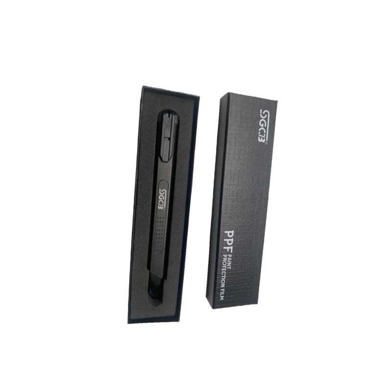 SGCB Black Blade 30 Degree Angled Utility Knife – монтажний ніж із сегментованим лезом для роботи із поліуретановою плівкою. Також може використовуватися скрізь, де потрібне точне, акуратне та швидке різання паперу, картону, фанери, ДВП, пластмас, лінолеуму, органічного скла, килимових покриттів, тканини, бандажних стрічок та інших матеріалів.