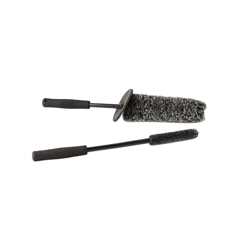 SGCB Microfiber Wheel Brush Kit – набір із двох йоршів для чищення колісних дисків. Щетина виконана з м'якої хімостійкої мікрофібри, що дозволяє працювати з лужною або кислотною автохімією. Гнучка основа дає можливість згинати йорші під певними кутами, підлаштовуючи їх для очищення найважчих і найвужчих місць.