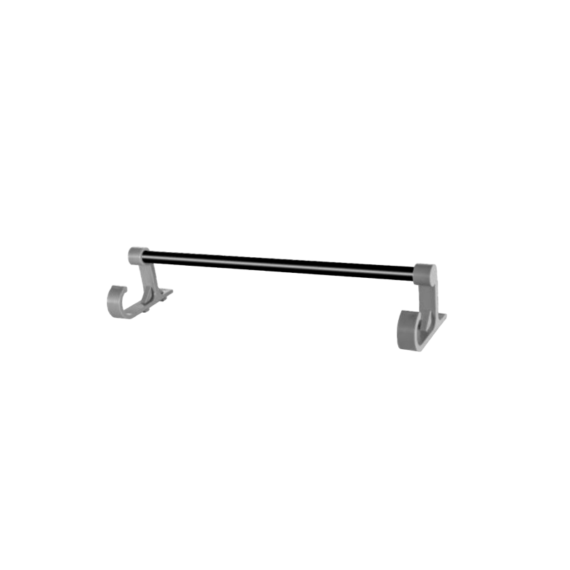 Навісний тримач виконаний із сталевої труби діаметром 14 мм та довжиною 355 мм, що забезпечує надійність та стійкість до навантажень. У комплект входять два пластикові кріплення, які легко фіксуються на перфорованій панелі.