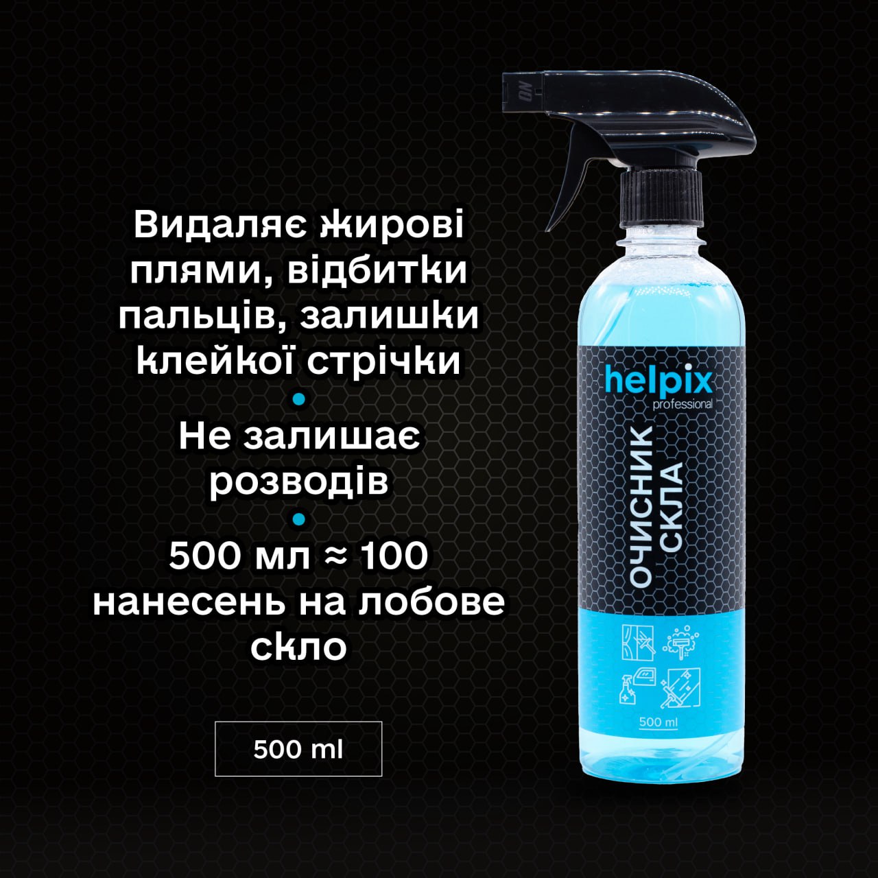 Очисник скла Helpix Professional – це засіб, який застосовують для миття скла, дзеркал та інших скляних поверхонь від типових для автомобільного скла забруднень, в тому числі деякі складні