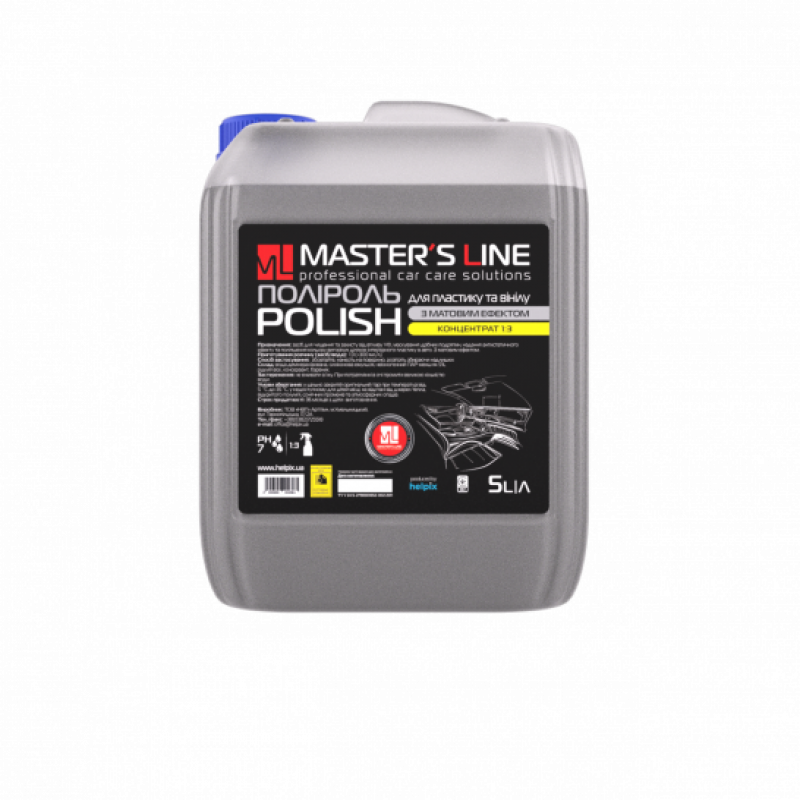Поліроль для пластику та вінілу Master's Line "З матовим ефектом" використовується для очищення і захисту панелі приладів, а також усіх деталей з пластику, дерева, гуми і вінілу всередині авто. Надає поверхні глибокого матового вигляду.