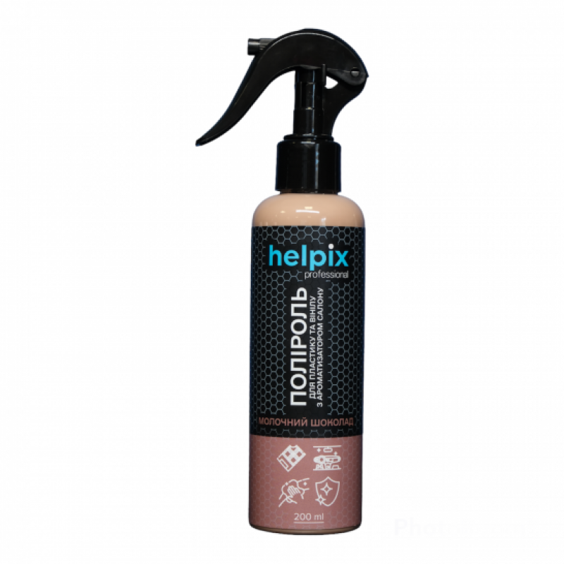Поліроль для пластику та вінілу Helpix Professional "Молочний Шоколад" використовується для очищення і захисту панелі приладів, а також усіх деталей з пластику, дерева, гуми і вінілу всередині авто. Володіє приємним ароматом шоколаду, який виступає в ролі ароматизатора салону впродовж довгого періоду, знешкоджуючи запах тютюну, пилу та ін.