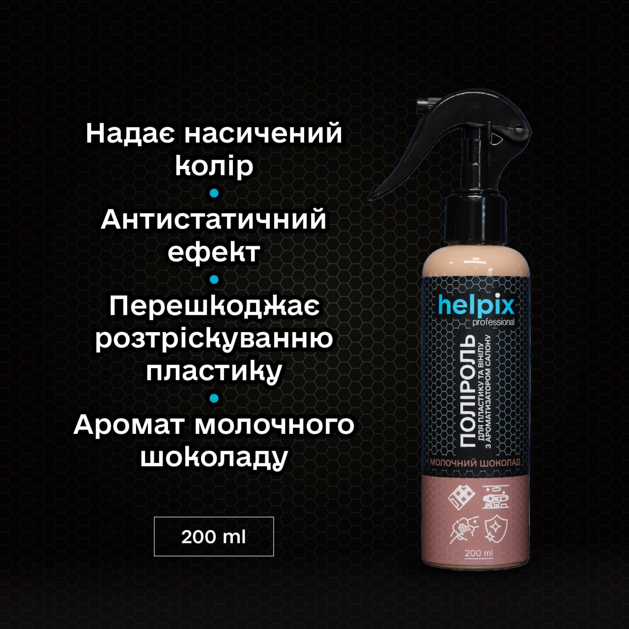 Переваги засобу - поліроль для пластику та вінілу Helpix Professional "Молочний Шоколад":