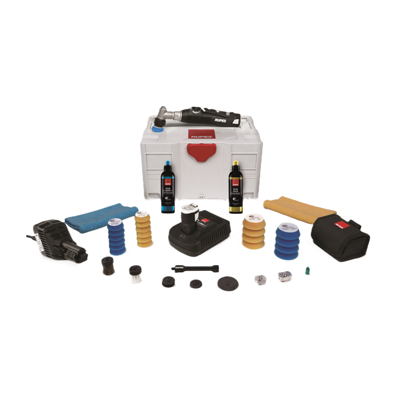 Полірувальна машина RUPES iBrid Nano Short Neck LUX — найбільш універсальний пристрій на ринку. Може працювати як від кабелю живлення, так і від акумуляторної батареї, що входить до комплекту. За допомогою змінних насадок змінюється принцип полірування, на вибір три типи обертання: ексцентрик 3 мм, ексцентрик 12 мм і ротор. Типи обертань можна поєднувати з підошвами різного діаметра, на вибір 34 мм або 50 мм. Крім цього, до комплекту входять щітки для очищення поверхонь: пластик, шкіра, алькантара, ковролін.
