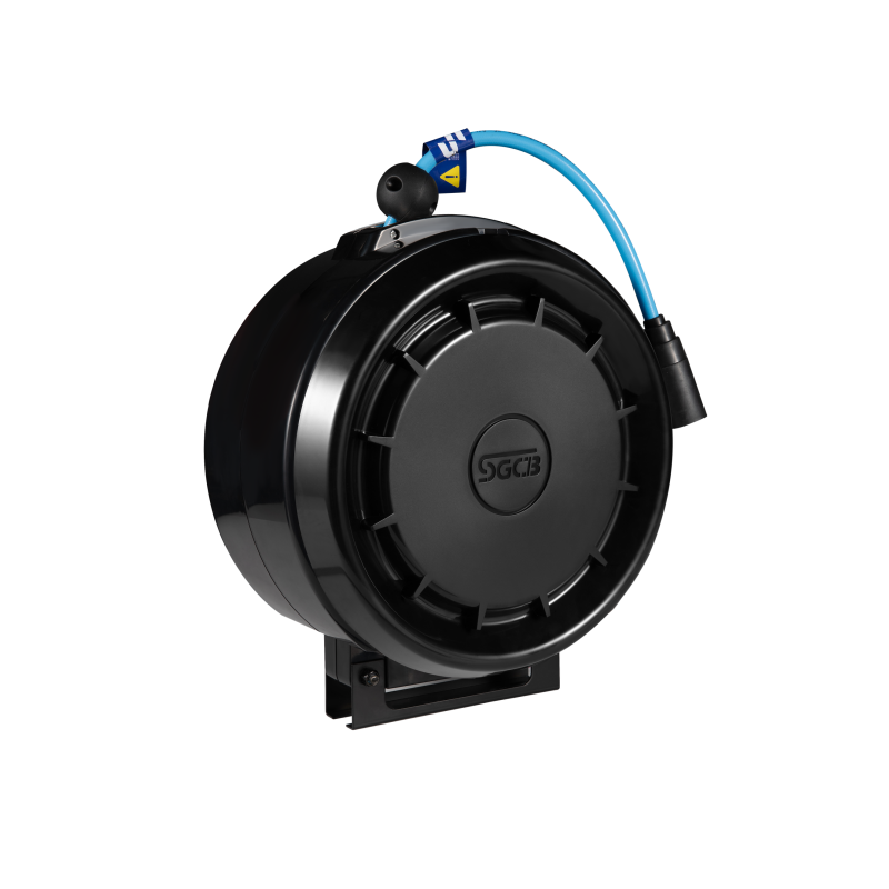 SGCB Modular Water Hose Reel SE – промисловий модульний подовжувач для води із десятиметровим шлангом. Використовується для створення модульної системи подовжувачів (вода, електрика, повітря) у СТО, великих мийних станціях, студіях детейлінгу.