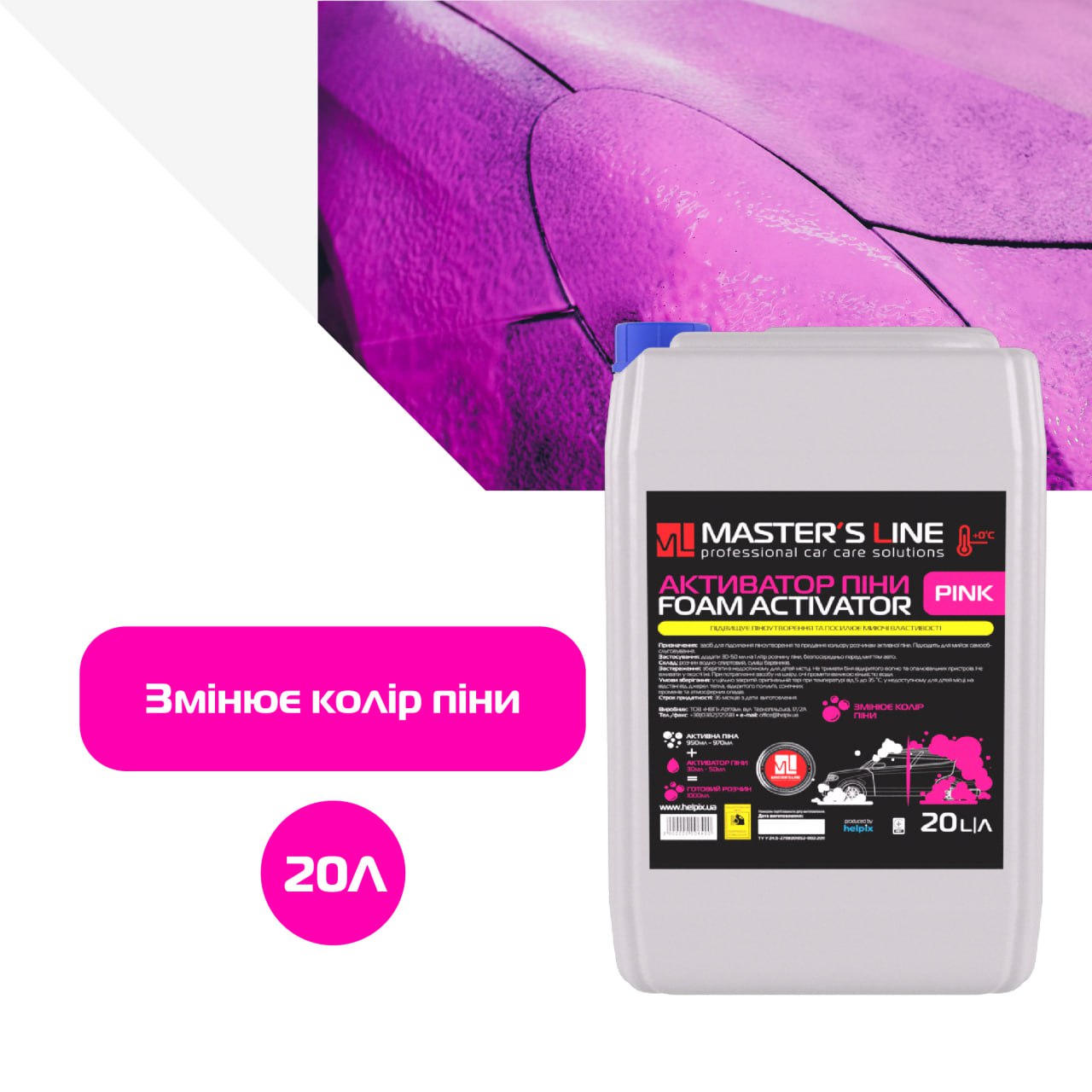 Професійний концентрований активатор мийного засобу Foam Activator для безконтактної мийки легкового та вантажного автотранспорту з високим рівнем піноутворення. Спеціально розроблений засіб для посилення мийних властивостей безконтактної мийки автомобіля. Після нанесення активатора на активну піну колір її змінюється з білого на рожевий. Завдяки унікальній формулі, до складу якої входять нанодетергенти, засіб допомагає легко видалити сильні забруднення від дорожнього пилу, статичної плівки, залишків комах і жирових забруднень. Ідеально підходить для автомийок самообслуговування. Легко змивається та не залишає рожевого забарвлення. До хімічного складу засобу не входять агресивні компоненти. Не завдає шкоди алюмінієвим, хромованим, гумовим та іншим поверхням автомобіля. Не залишає осаду в трубопроводах та ємностях системи дозування. Завдяки особливим компонентам відмінно працює з жорсткою водою та в зимовий період року.