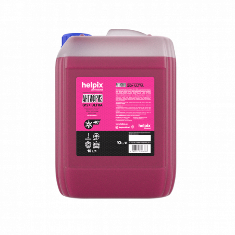 Рідина охолоджувальна «Антифриз» G12+ ULTRA - охолоджуюча рідина на основі моноетиленгликоля і органічної (карбоксилатной) добавки. Цей продукт не містить нітритів, амінів, фосфатів, боратів, силікатів і інших мінеральних домішок. «Антифриз» G12+ ULTRA підходить як для бензинових, так і для дизельних двигунів.Карбоксилатні антифризи містять інгібітори корозії на основі органічних (карбонових) кислот. Такі інгібітори не утворюють захисного шару по всій поверхні системи – вони адсорбуються лише в осередках виникнення корозії. Інші, здорові, елементи системи охолодження не покриваються плівкою, а значить рідина відводить тепло ефективніше . Легше переносять високі температури, що особливо важливо для сучасних двигунів з алюмінію.