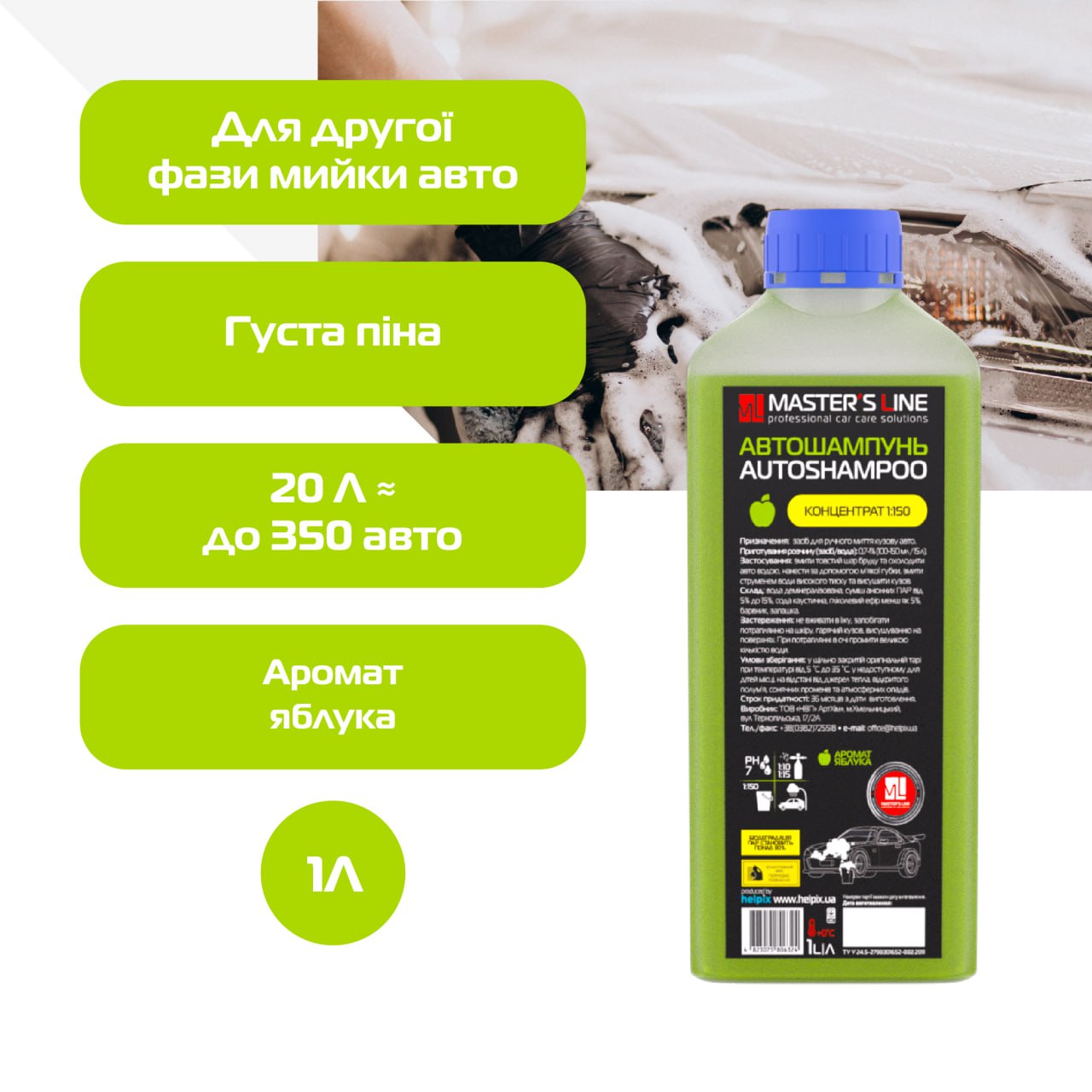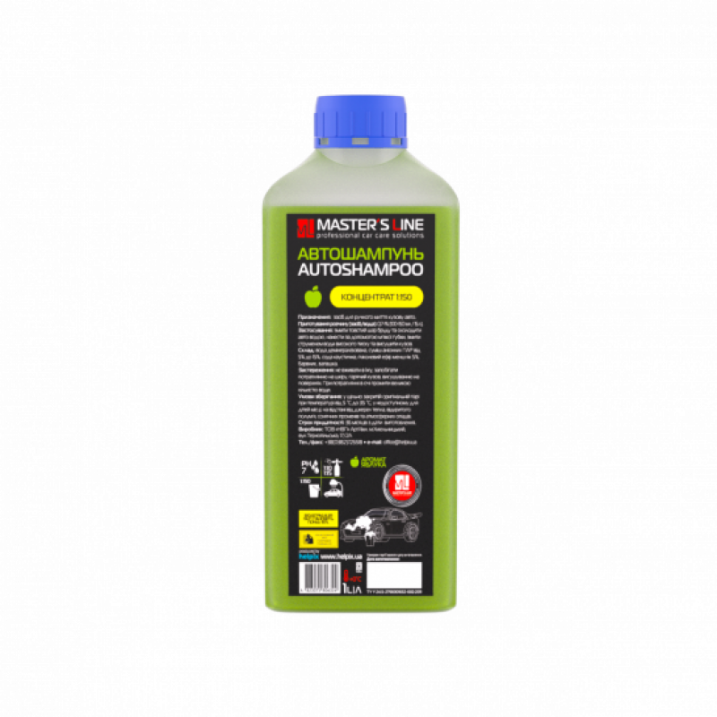 Автошампунь концентрат 1:150 Master’s Line призначений для ручної мийки авто. Нейтральний високопінний шампунь ідеально підійде для другої фази мийки авто (видалення статичних забруднень). Легко розчиняється як в холодній, так і в теплій воді.