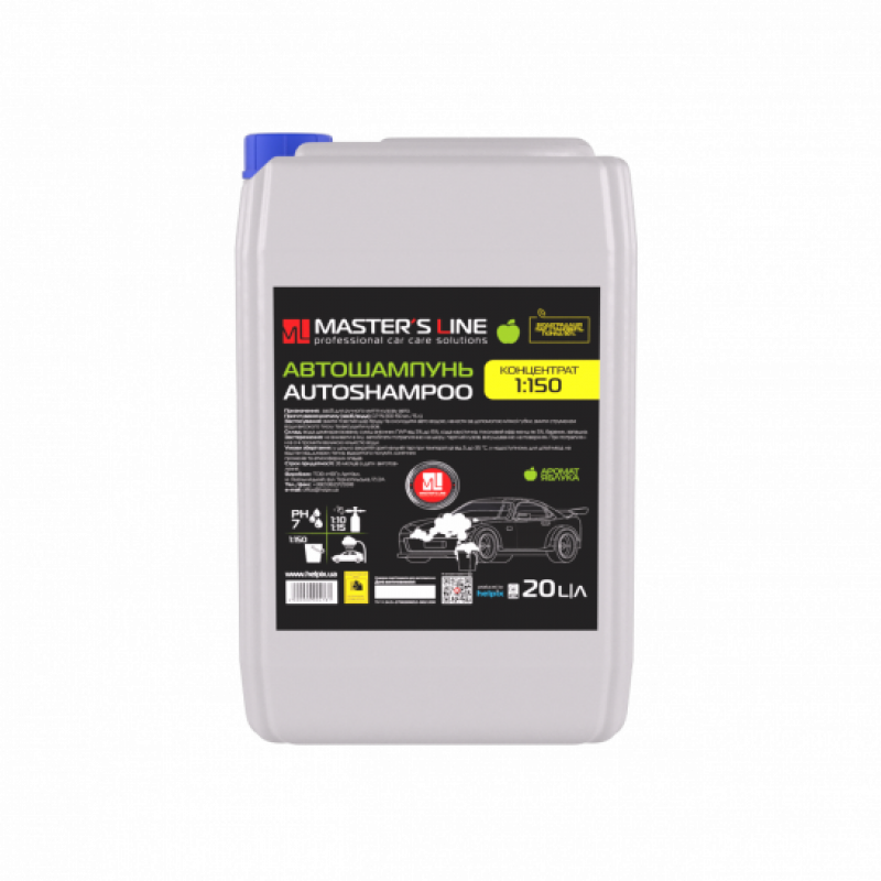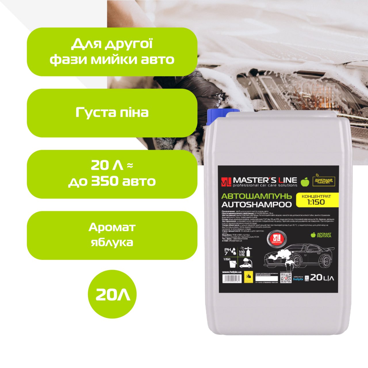 Автошампунь концентрат 1:150 Master’s Line призначений для ручної мийки авто. Нейтральний високопінний шампунь ідеально підійде для другої фази мийки авто (видалення статичних забруднень). Легко розчиняється як в холодній, так і в теплій воді.