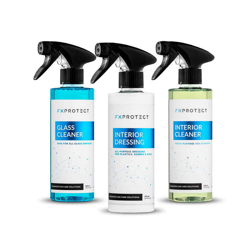 - FX PROTECT INTERIOR CLEANER- 0,5 – універсальний очисник для всіх поверхонь салону. Видаляє пил, бруд, жир і плями з пластику, шкіри, тканини і килимових покриттів. Має кисле рН і не залишає розводів.