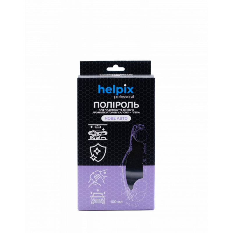 Поліроль для пластику та вінілу Helpix Professional "Нове авто" використовується для очищення і захисту панелі приладів, а також усіх деталей з пластику, дерева, гуми і вінілу всередині авто. Володіє приємним ароматом нового авто, який виступає в ролі ароматизатора салону впродовж довгого періоду, знешкоджуючи запах тютюну, пилу та ін.