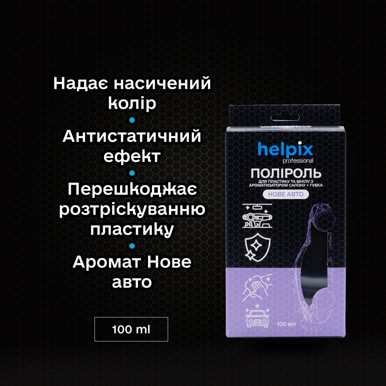 Переваги засобу - поліроль для пластику та вінілу Helpix Professional "Нове авто":