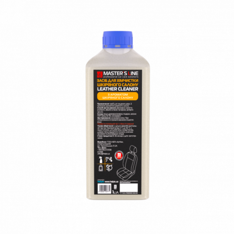 Очисник-кондиціонер для шкіри Master’s Line Leather Cleaner застосовується для очищення сидінь і внутрішньої оббивки салону автомобіля з натуральної, штучної шкіри та вінілу. Може використовуватись в побуті для очистки меблів, взуття, одягу та ін. (виробів з натуральної, штучної шкіри та вінілу).