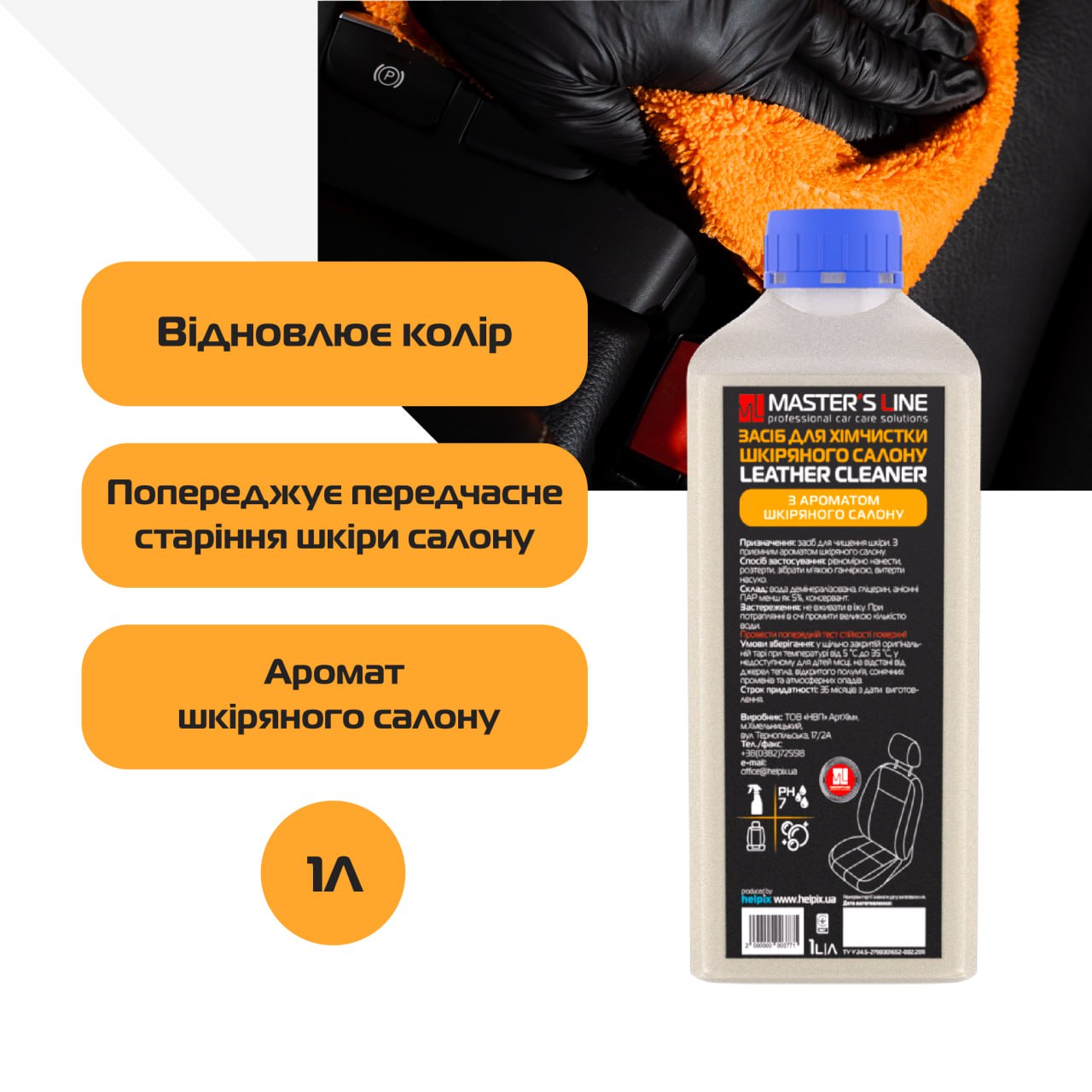 Переваги засобу - очисник-кондиціонер для шкіри Master’s Line Leather Cleaner:
