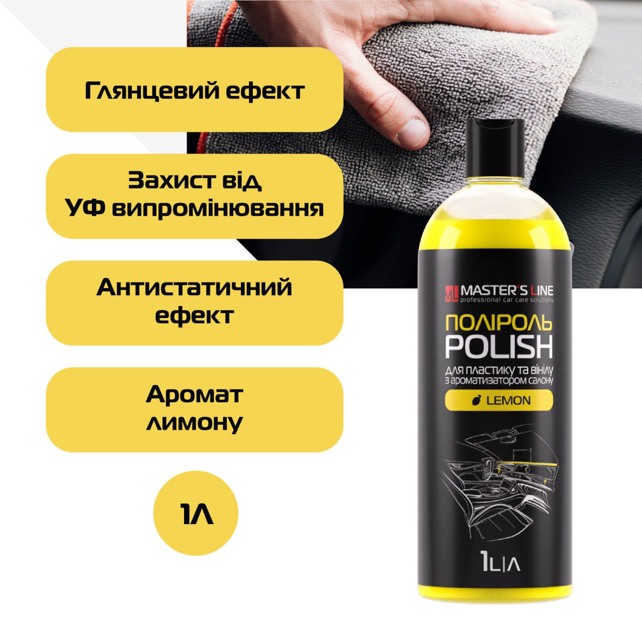 Переваги засобу - поліроль-ароматизатор для пластику та вінілу Master's Line "Лимон":