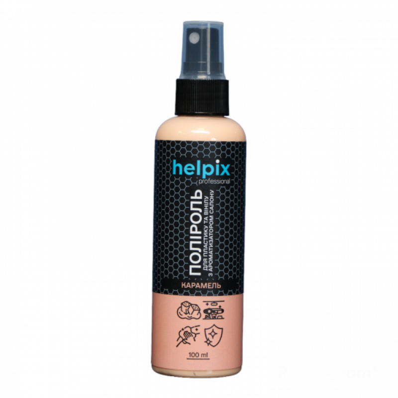 Поліроль для пластику та вінілу Helpix Professional "Карамель" використовується для очищення і захисту панелі приладів, а також усіх деталей з пластику, дерева, гуми і вінілу всередині авто. Володіє приємним ароматом карамелі, який виступає в ролі ароматизатора салону впродовж довгого періоду, знешкоджуючи запах тютюну, пилу та ін.