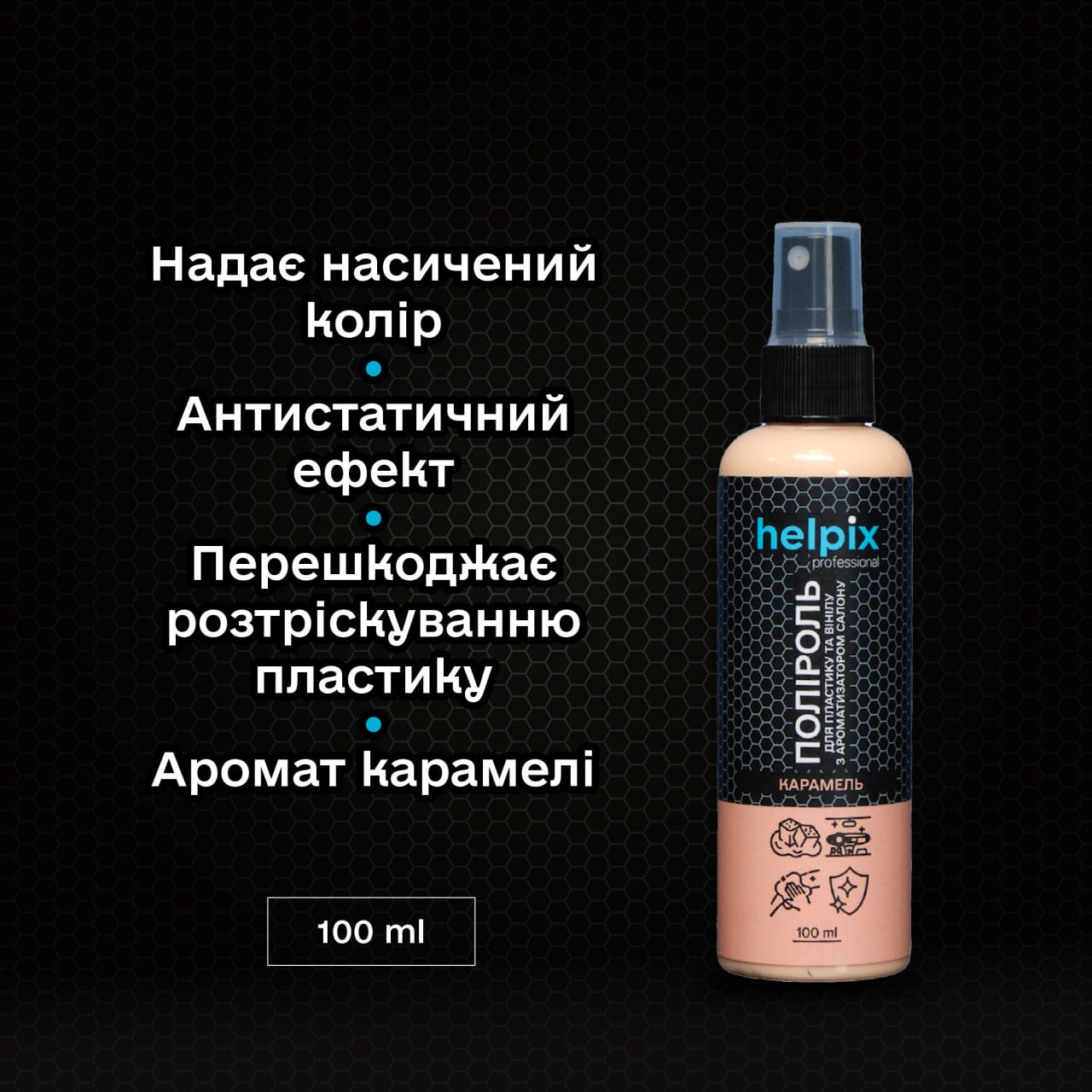 Переваги засобу - поліроль для пластику та вінілу Helpix Professional "Карамель":