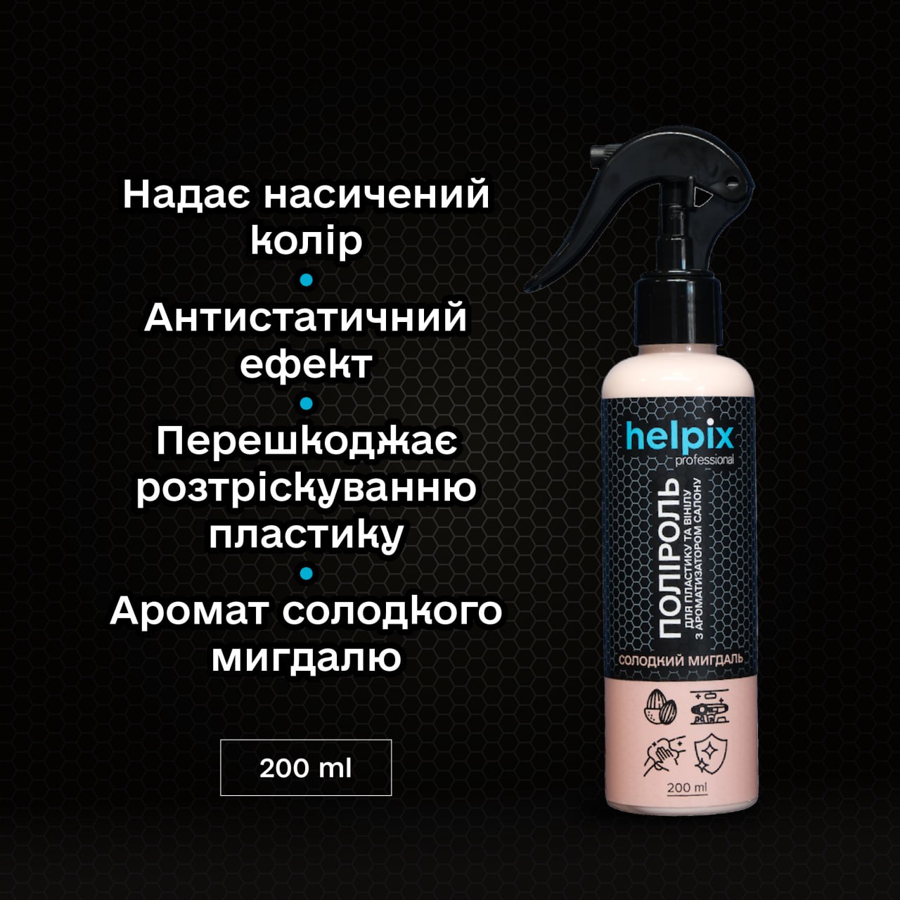 Переваги засобу - поліроль для пластику та вінілу Helpix Professional "Солодкий Мигдаль":