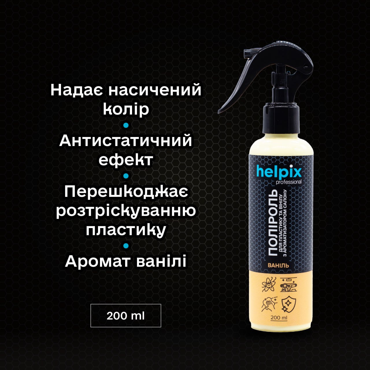 Переваги засобу - поліроль для пластику та вінілу Helpix Professional "Ваніль":