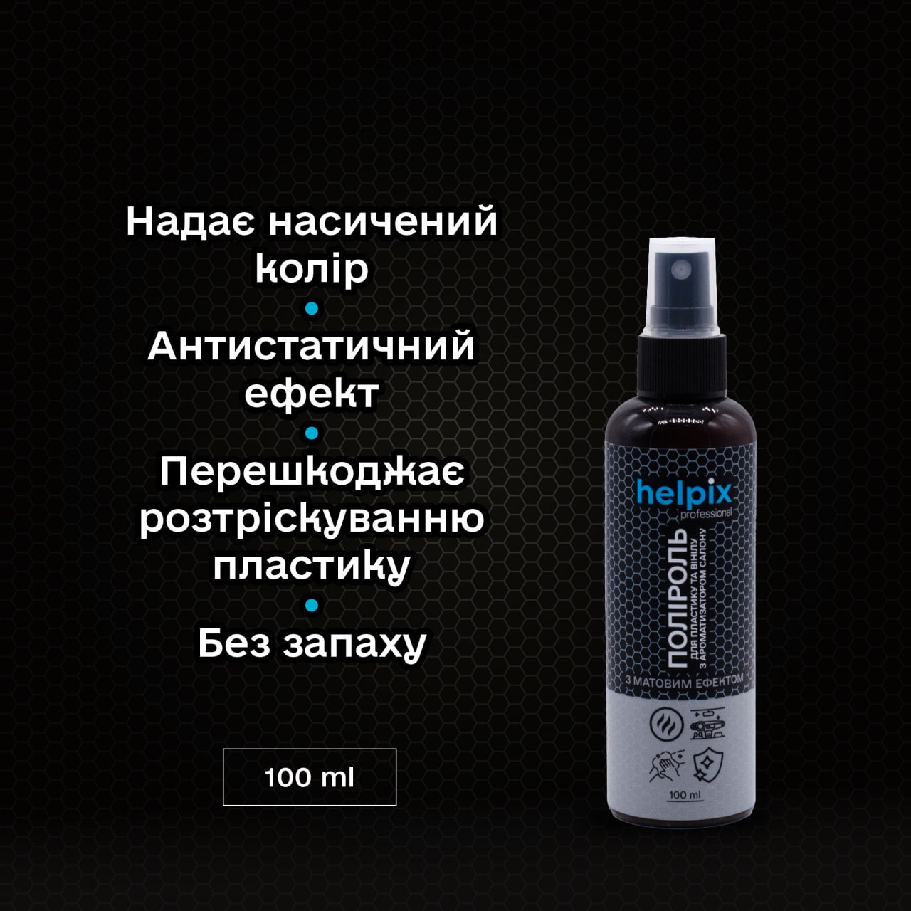 Переваги засобу - поліроль для пластику та вінілу Helpix Professional "З матовим ефектом":