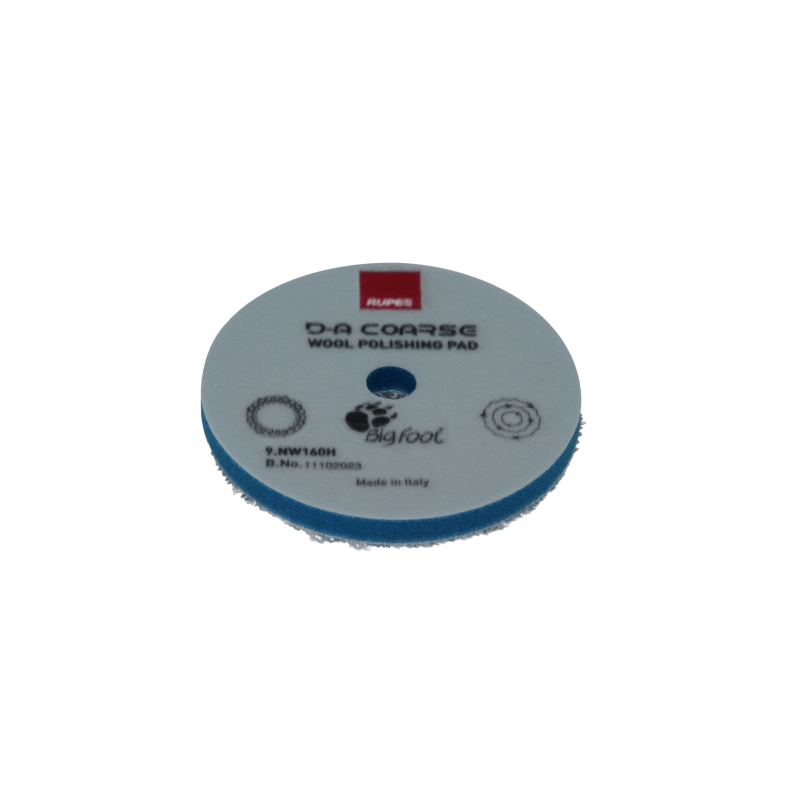 RUPES D-A Coarse Wool Polishing Pad NW160H – полірувальний круг із жорсткої шерсті, розроблений для роботи сумісно з ексцентриковими полірувальними машинами. Допускається використання із планетарними пристроями. Підходить для швидкого та ефективного усунення грубих дефектів лакофарбового покриття та слідів матування, у тому числі твердих лаків. Найкращі результати показує з полірувальними пастами RUPES D-A Coarse, RUPES D-A Fine. У деяких випадках, у поєднанні з пастою RUPES Uno Protect, може використовуватися для однокрокового полірування.