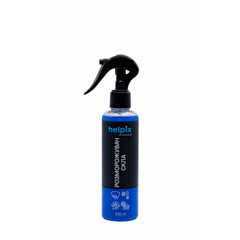 Розморожувач скла Helpix Professional – це засіб, що застосовується для швидкого видалення інею і тонкого льоду зі скла авто (лобового, заднього, а також бічних), дзеркал і скляної оптики автомобіля. Тимчасово запобігає утворенню льодового шару або інею на вікнах і фарах авто. Засіб розроблений спеціально для використання за температури нижче нуля, коли обмерзання виникають