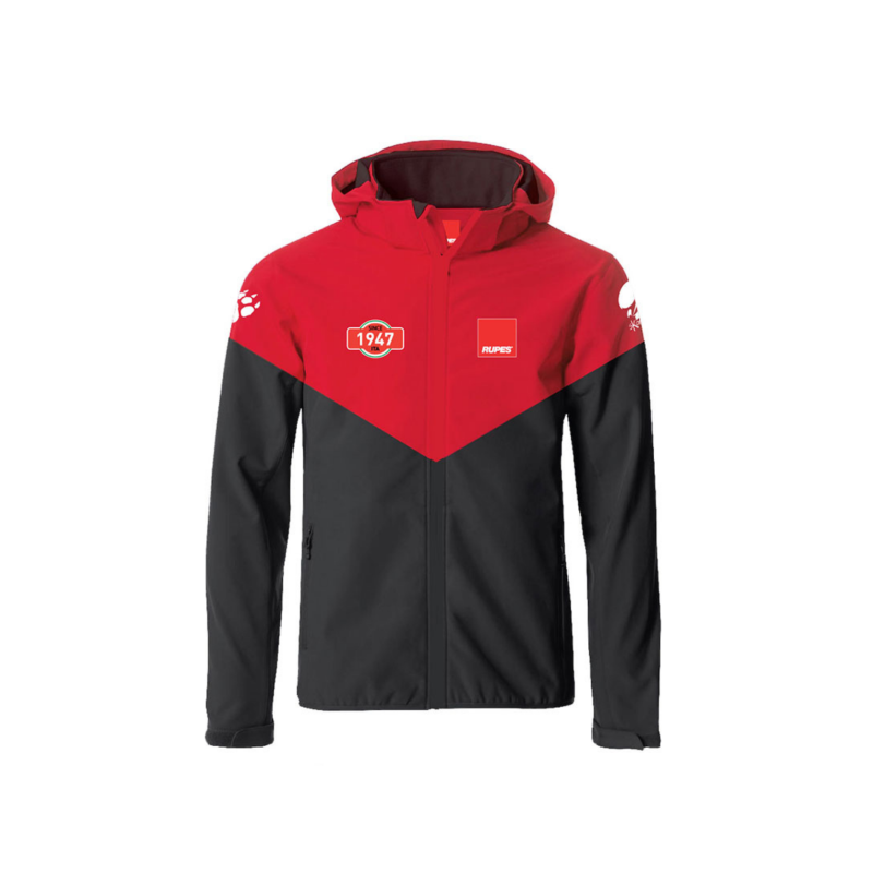 Softshell Jacket XXL – брендова куртка RUPES у чорно-червоних кольорах, відшита з інноваційної плащової тканини Softshell. Це тканина, що поєднує в собі функції базового утеплюючого (флісового) та основного (дюспо-спандекс) шарів. Вона зігріває тіло, відводить зайву вологу від тіла, захищає від вітру та дощу.