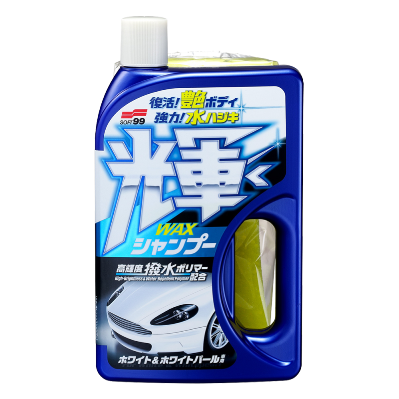 Шампунь SOFT99 Wax in Shampoo High Shiny White. Для гідрофобного сходження води та блиску cвітлих авто