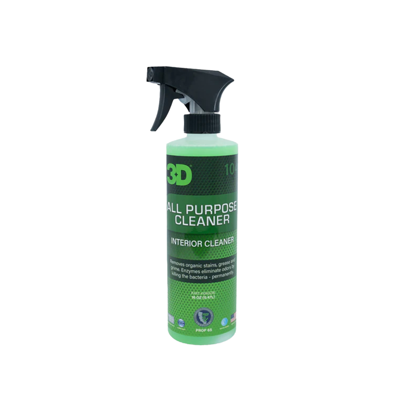 3D All Purpose Cleaner – універсальний аерозольний очисник багатоцільового використання. М'яко очищає та освіжає будь-які поверхні в салоні – прозорий, глянцевий та структурний пластик, тканинні елементи, підлогові килимки. Впорається із забрудненнями кузова, коліс, арок, моторного відсіку. Ефективний проти пилу, жирних плям, відбитків пальців.