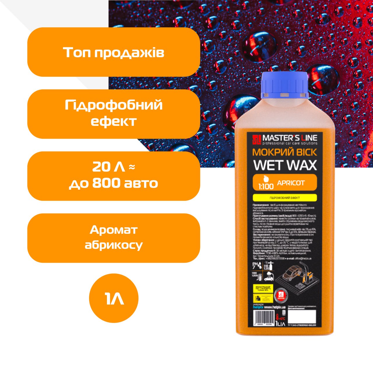 Віск для сушки Master’s Line «Apricot» 1:100 призначений для прискорення сушки автомобіля після мийки. Висококонцентрований засіб з консервуючими властивостями і захистом від ультрафіолету. Може використовуватися зі всіма типами обладнання, з жорсткою і м’якою, холодною і гарячою водою.