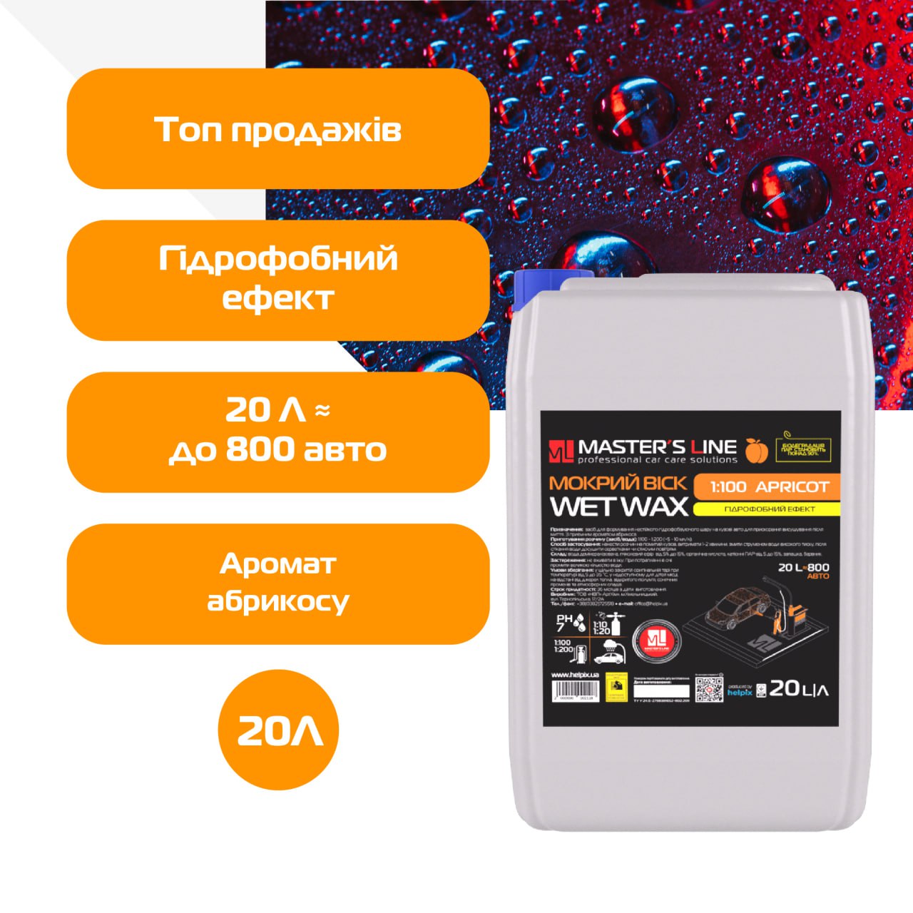 Віск для сушки Master’s Line «Apricot» 1:100 призначений для прискорення сушки автомобіля після мийки. Висококонцентрований засіб з консервуючими властивостями і захистом від ультрафіолету. Може використовуватися зі всіма типами обладнання, з жорсткою і м’якою, холодною і гарячою водою.
