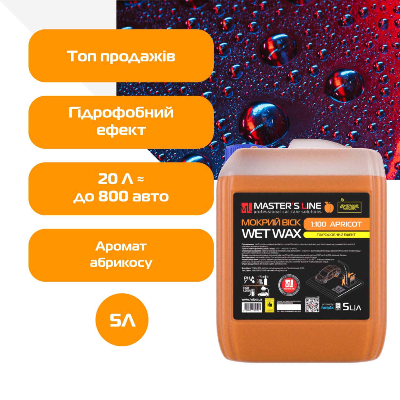 Віск для сушки Master’s Line «Apricot» 1:100 призначений для прискорення сушки автомобіля після мийки. Висококонцентрований засіб з консервуючими властивостями і захистом від ультрафіолету. Може використовуватися зі всіма типами обладнання, з жорсткою і м’якою, холодною і гарячою водою.
