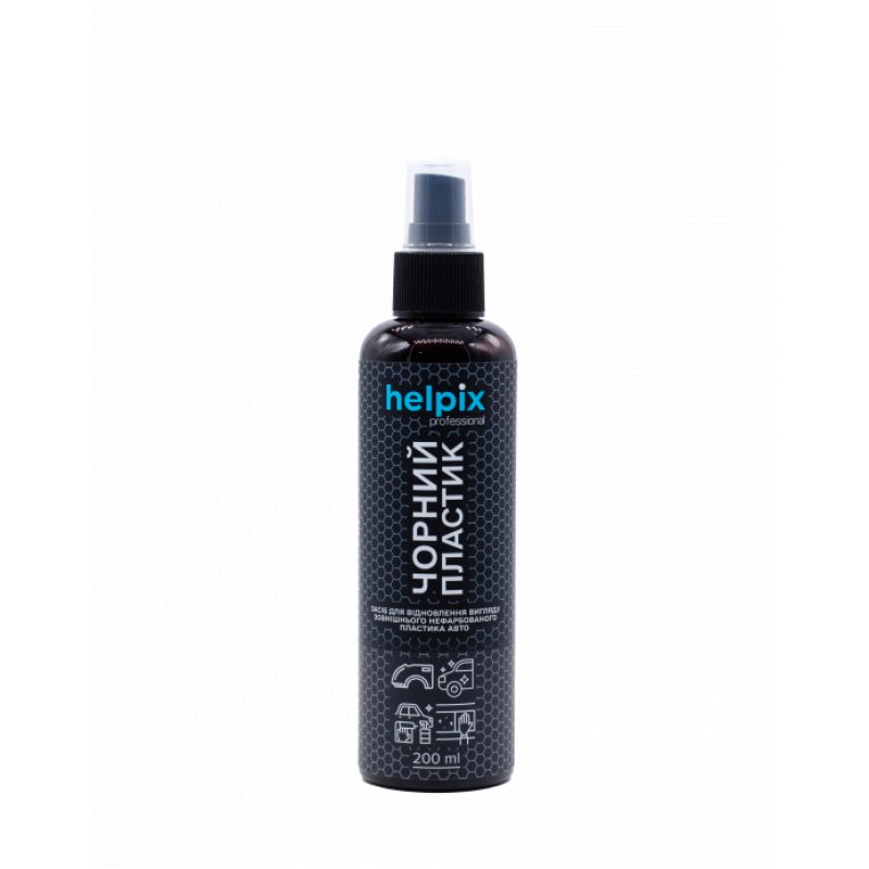Чорний пластик Helpix Professional– це засіб для фінішного оброблення нефарбованого автомобільного пластику після миття, формування порозаповнюючого шару, просочування поверхневого шару пластикових деталей. Компоненти засобу просочуються у найдрібніші пори та капіляри пластику, формують тонку, прозору плівку, що змінює віддзеркалення світла поверхнею,