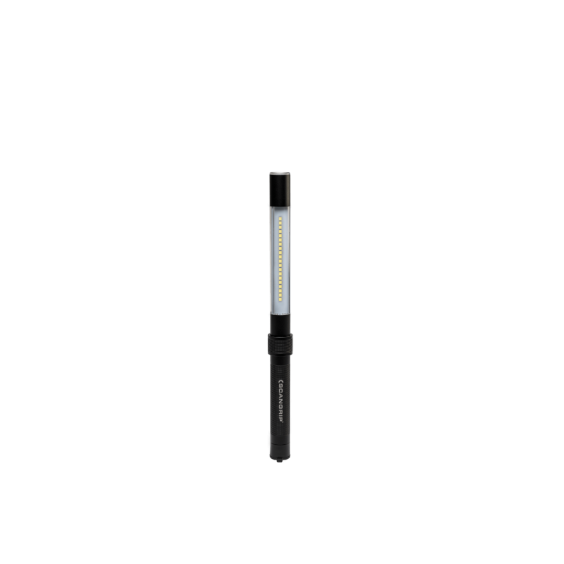 Scangrip Line Light R — потужний телескопічний світлодіодний світильник на акумуляторі з ліхтариком на торці забезпечує світловіддачу до 600 люмен. Працює у двох режимах на вибір: 50% або 100%, і повністю заряджається за чотири години.
