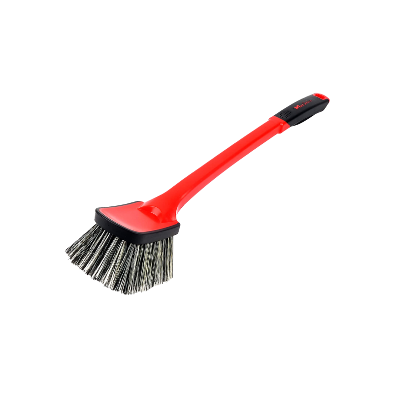 MaxShine Soft Grip Tire & Wheel Cleaning Brush Long – щітка з довгою ручкою для чищення гуми, дисків, арок, підкапотного простору. Її жорстка щетина зроблена із суміші хімостійких поліетилену та поліпропілену, що дозволяє використовувати інструмент разом з кислотною та лужною хімією. Для зниження ризику механічного пошкодження поверхонь, що очищаються, головка щітки оснащена прогумованим бампером.
