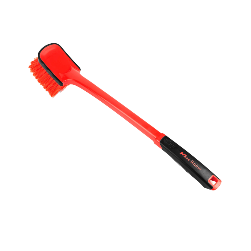 MaxShine Soft Grip Wheel & Body Brush Long – щітка з довгою ручкою для чищення гуми, дисків та зовнішніх поверхонь автомобілів. Щетина виконана із суміші хімостійких ПБТ (полібутилентерефталату) та ПЕТ-полімерів, що дозволяє використовувати інструмент разом з кислотною та лужною хімією. Для зниження ризику механічного пошкодження поверхонь, що очищаються, головка щітки оснащена прогумованим бампером.