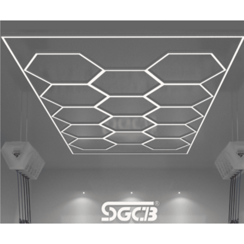 SGCB Hexagonal Grid Light – модульна LED-підсвітка у формі сот з кольоровою температурою 7000 К для освітлення студій дітей лінгу, малярських цехів, автомайстерень, офісних приміщень, фітнес-центрів. Вона використовується там, де потрібне рівномірне освітлення без тіней та ефекту стробоскопа.