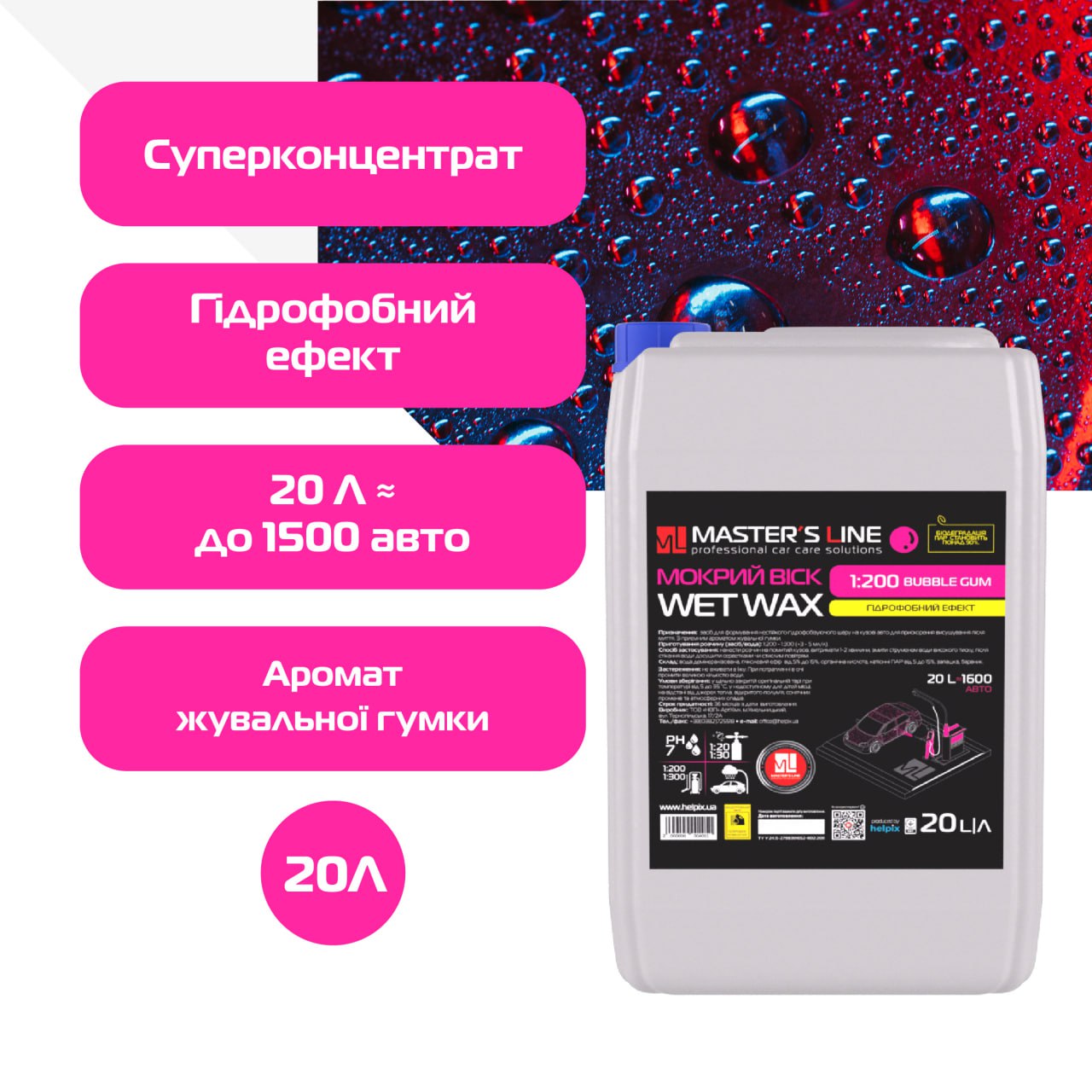 Віск для сушки Master’s Line «Bubble gum» 1:200 призначений для прискорення сушки автомобіля після мийки. Висококонцентрований засіб з консервуючими властивостями і захистом від ультрафіолету. Може використовуватися зі всіма типами обладнання, з жорсткою і м’якою, холодною і гарячою водою.