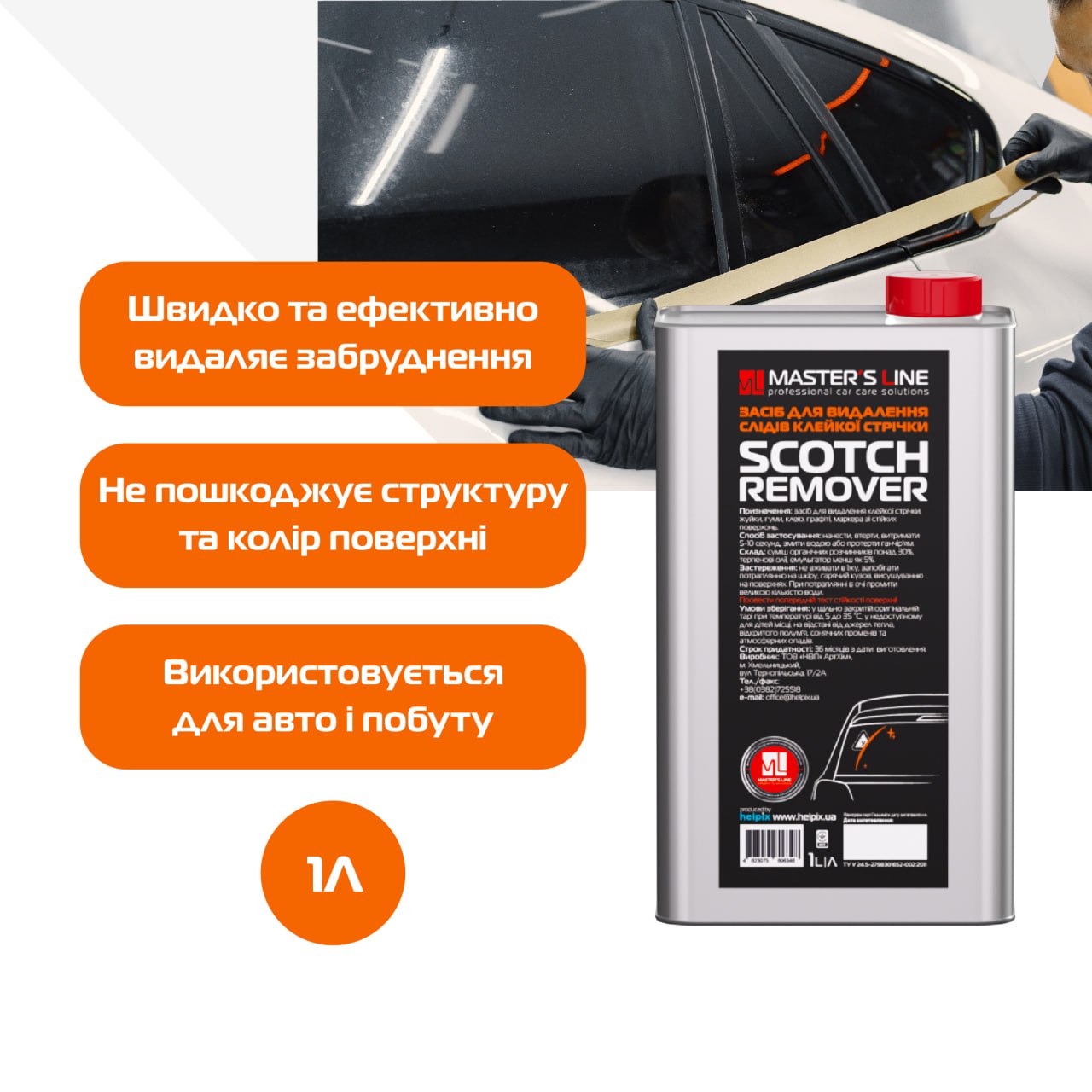 Засіб для видалення слідів від клейкої стрічки Master’s Line призначений для швидкого та ефективного видалення різних видів клейкої стрічки (скотч), жуйки, клейових слідів від наклейок, а також графіті і маркера з різних поверхонь. Швидко та ефективно розщеплює забруднення, повністю видаляє з поверхні. Може застосовуватись як очистки деталей авто, так і в побуті (для очистки меблів, підлоги).