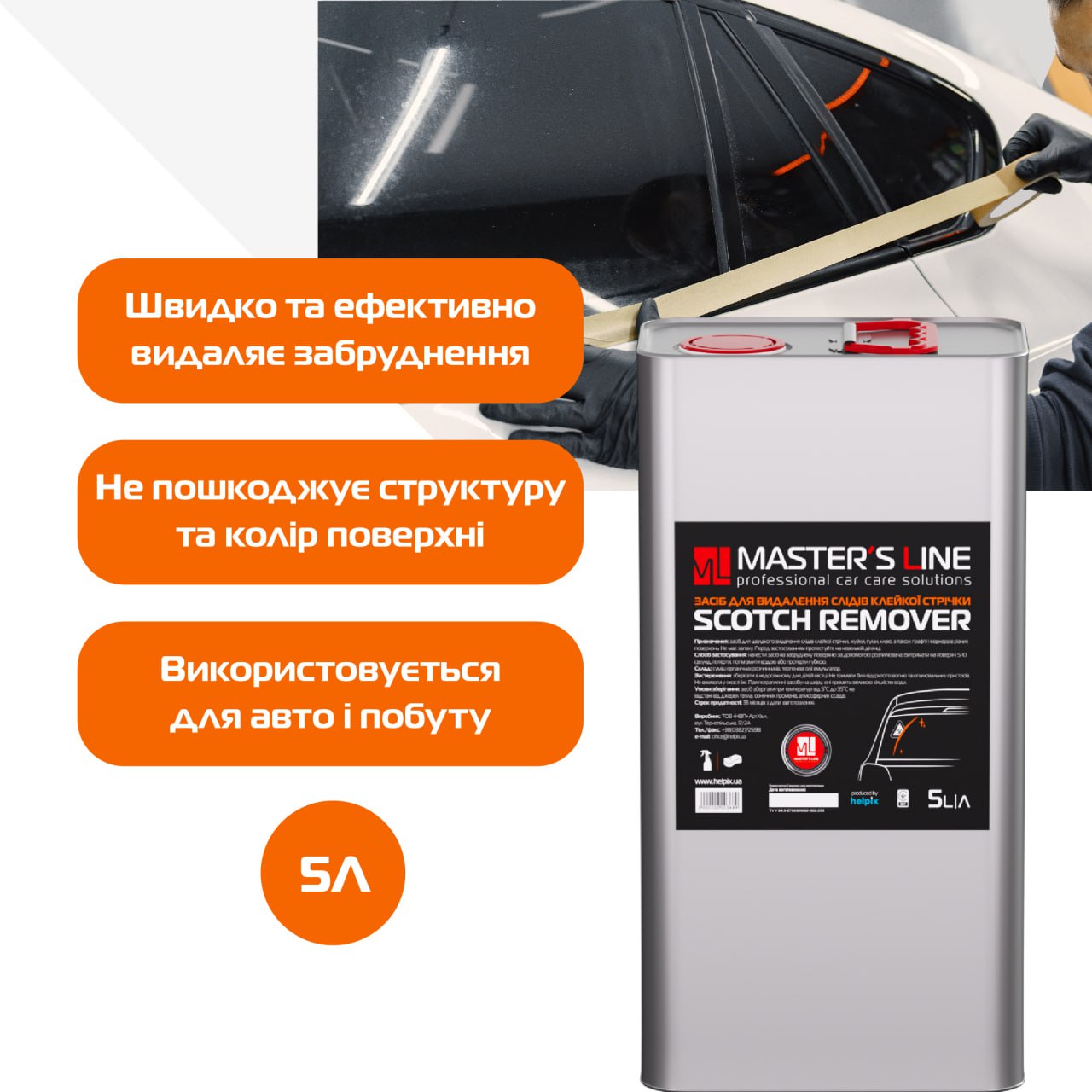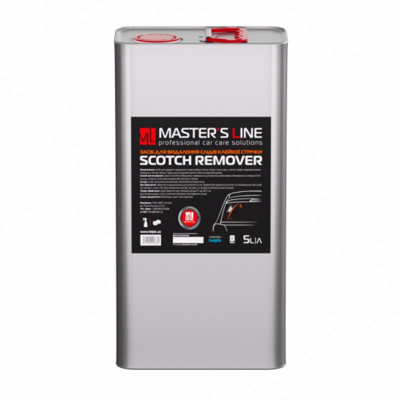 Засіб для видалення слідів від клейкої стрічки Master’s Line призначений для швидкого та ефективного видалення різних видів клейкої стрічки (скотч), жуйки, клейових слідів від наклейок, а також графіті і маркера з різних поверхонь. Швидко та ефективно розщеплює забруднення, повністю видаляє з поверхні. Може застосовуватись як очистки деталей авто, так і в побуті (для очистки меблів, підлоги).